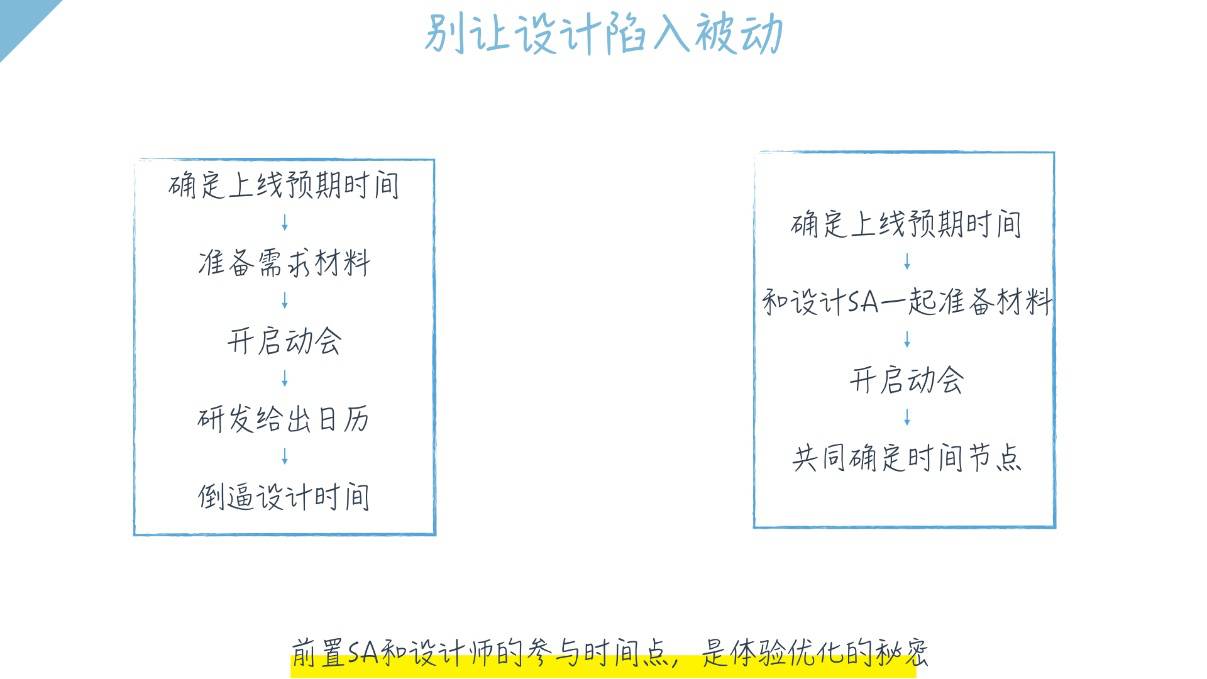所以要前置设计的参与时间,万万不要倒逼他们,以致她们陷入被动。