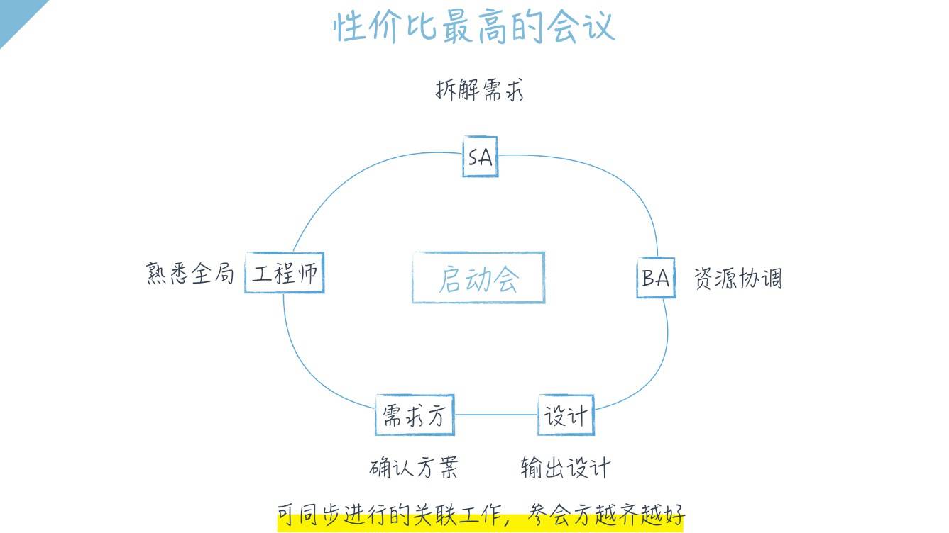启动会的性价比在于,在项目启动阶段,是奠定基调和明确关键点的重要时机,任何一个人的缺席都会导致他对需求理解的偏差。